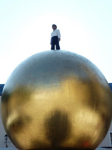 Keywords: balkenhol mozartkugel sphaera golden ball man fig male figure artwork salzburg kapitelplatz austria