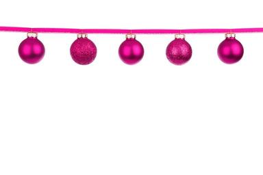 Keywords: ball bauble christmas colorful decoration glass group holiday line ornament pink ribbon shine xmas row isolated