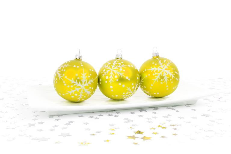 Keywords: ball bauble christmas decoration decorative festive glass holiday plate yellow season seasonal white xmas three star stars