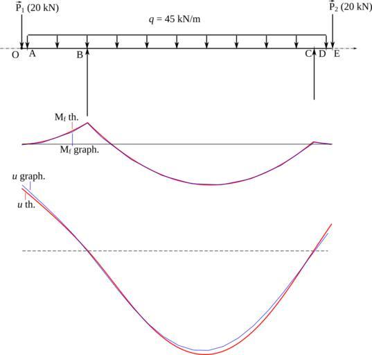Keywords: Ballon reflux flexion comparaison methode graphique et elements finis.svg en Bending of a beam comparison of the graphical method using the funicular polygon in cyan and the finite elements method using RDM6 - Flexion http //iut univ-lemans fr/ydlogi/ in red for the bending moment diagram M<sub>f</sub> and the deflection u See File Ballon reflux flexion svg fr Flexion d'une poutre comparaison de la méthode graphique utilisant le polygone funiculaire en cyan et de la méthode des éléments finis obtenu avec RDM6 - Flexion http //iut univ-lemans fr/ydlogi/ en rouge pour le diagramme des moments fléchissants M<sub>f</sub> et le déplacement u Voir File Ballon reflux flexion svg own Cdang 2009-11-20 Created with Inkscape Finite element modelling Graphic statics Reflux drums Bending moment |