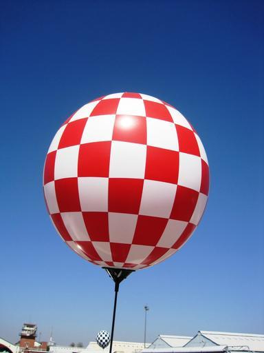 Keywords: balloon checkered red white blocks pattern repetition floating sky