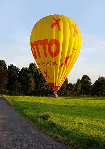 Keywords: balloon hot air balloon hot air balloon ride landed field forest away yellow sky sleeve neuwied rheinland