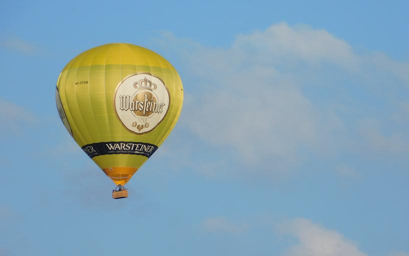 Keywords: balloon sky hot air balloon float blue fly balloon blue sky clouds warsteiner advertising