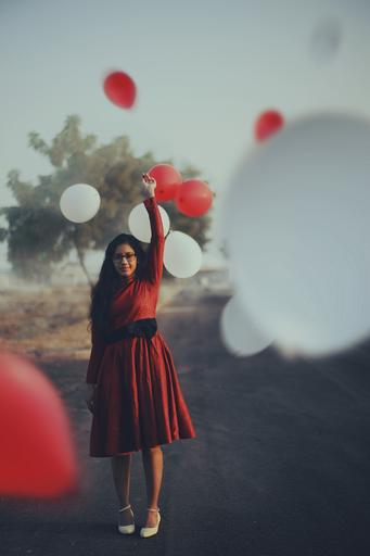 Keywords: balloons woman colorful celebration birthday balloons party balloons outdoors