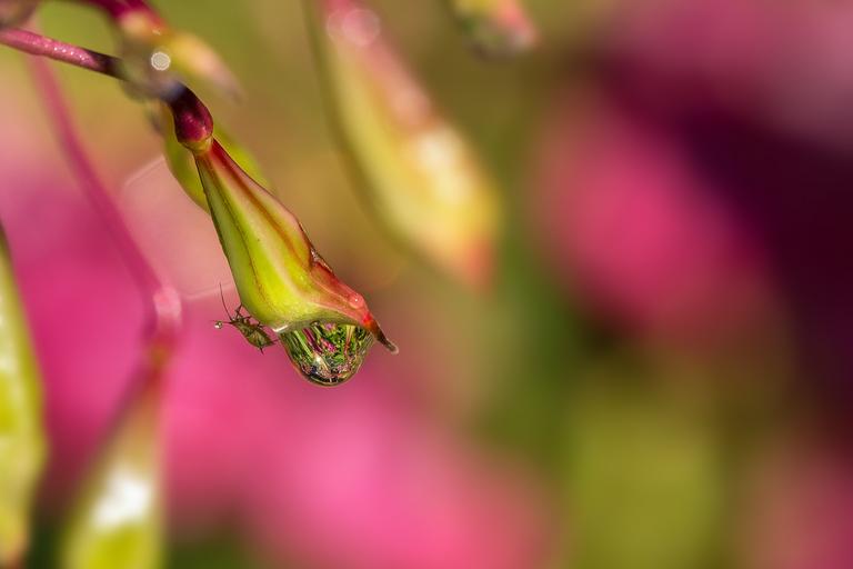 Keywords: balsam dew dewdrop insect probe morgentau drop of water close macro color drip blossom bloom bud mood nature
