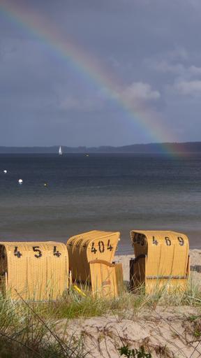 Keywords: baltic sea sea water beach beach chair rainbow weather landscape coast holiday sand rain sun recovery natural spectacle holidays