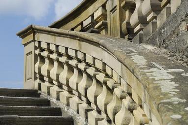 Keywords: balustrade stone wall stairs railing stone stairway old grey gradually building castle creative telephoto stair step bent swinging weathered stone sand stone structure facade