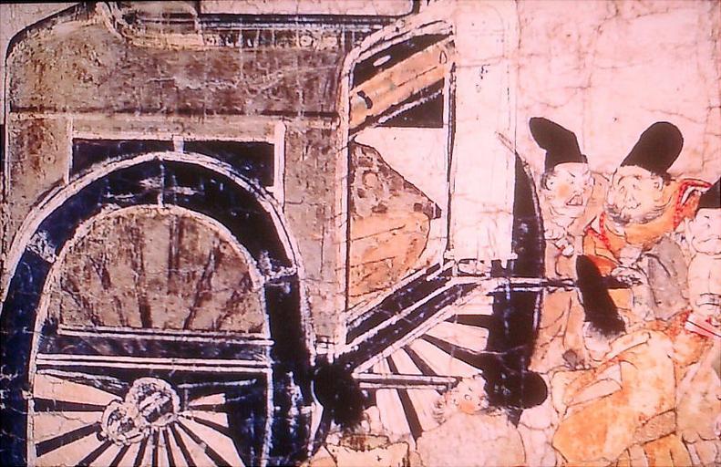 | Keywords: Ban Dainagon - ox cart people B.jpg century 12 Color and ink on paper cm 31 2600 Idemitsu Museum of Art Tokyo Japan Detail of people next to ox-cart in which Tomo no Yoshio Ban Dainagon is exiled to Izu http //inoues net/tenno/dainagon html PD-Japan PD-Art Other versions Ban Dainagon Ekotoba |