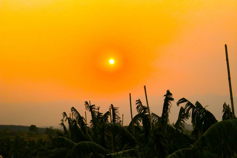 Keywords: banana plantations banana sunset orange sky evening golden sunset atmospheric sunset