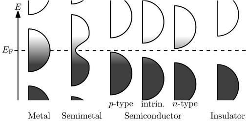 | Keywords: Band filling diagram.svg Band structure diagrams for metal etc Inspired by Kittel's Introduction to Solid State Physics 7th Edition chapter 7 2013-06-16 22 47 04 own Nanite Source code Made using Ipe Source code below also placed into public domain <source lang xml > < xml version 1 0 > < DOCTYPE ipe SYSTEM ipe dtd > <ipe version 70005 creator ipetoipe 7 1 2 > <info created D 20130511174826 modified D 20130526102608 /> <ipestyle name cust > <pen name heavier value 1 /> <color name gray value 0 5 /> <color name darkgray value 0 25 /> <color name lightgray value 0 75 /> <dashstyle name dashed value 4 0 /> <textsize name large value \large /> <textsize name Large value \Large /> <textsize name LARGE value \LARGE /> <textsize name huge value \huge /> <textsize name Huge value \Huge /> <textsize name small value \small /> <textsize name footnote value \footnotesize /> <textsize name tiny value \tiny /> <textstyle name center begin \begin center end \end center /> <textstyle name itemize begin \begin itemize end \end itemize /> <textstyle name item begin \begin itemize \item end \end itemize /> <gridsize name 4 pts value 4 /> <gridsize name 8 pts ~3 mm value 8 /> <gridsize name 16 pts ~6 mm value 16 /> <gridsize name 32 pts ~12 mm value 32 /> <gridsize name 10 pts ~3 5 mm value 10 /> <gridsize name 20 pts ~7 mm value 20 /> <gridsize name 14 pts ~5 mm value 14 /> <gridsize name 28 pts ~10 mm value 28 /> <gridsize name 56 pts ~20 mm value 56 /> <gridsize name 2 pts value 2 /> <anglesize name 90 deg value 90 /> <anglesize name 60 deg value 60 /> <anglesize name 45 deg value 45 /> <anglesize name 30 deg value 30 /> <anglesize name 22 5 deg value 22 5 /> <layout paper 280 136 origin 0 0 frame 280 136 /> <gradient name fermi type axial coords 0 64 0 96 extend yes > <stop offset 0 color 0 25 /> <stop offset 1 color 1 /> </gradient> <tiling name falling angle -60 step 4 width 1 /> <tiling name rising angle 30 step 4 width 1 /> </ipestyle> <page> <layer name alpha /> <layer name BBOX /> <view layers alpha active alpha /> <path layer alpha stroke black dash dashed pen heavier > 16 80 m 280 80 l </path> <text matrix 1 0 0 1 -154 248 -666 815 transformations translations pos 198 026 670 189 stroke black type label halign center valign baseline >Metal</text> <text matrix 1 0 0 1 -106 248 -666 815 transformations translations pos 198 026 670 189 stroke black type label halign center valign baseline >Semimetal</text> <text matrix 1 0 0 1 -26 248 -666 815 transformations translations pos 198 026 670 189 stroke black type label halign center valign baseline >Semiconductor</text> <text matrix 1 0 0 1 57 752 -666 815 transformations translations pos 198 026 670 189 stroke black type label halign center valign baseline >Insulator</text> <text matrix 1 0 0 1 -150 -658 464 transformations translations pos 152 736 stroke black type label valign baseline > E_ \rm F </text> <text matrix 1 0 0 1 -62 248 -646 815 transformations translations pos 198 026 670 189 stroke black type label halign center valign top > p -type</text> <path layer BBOX stroke black > 0 0 m 0 136 l 280 136 l 280 0 l h </path> <path layer alpha matrix 1 0 0 1 0 -4 stroke black pen heavier rarrow normal/normal > 20 128 m 20 28 l </path> <text matrix 1 0 0 1 -136 -610 464 transformations translations pos 152 736 stroke black type label valign baseline > E </text> <text matrix 1 0 0 1 9 752 -646 815 transformations translations pos 198 026 670 189 stroke black type label halign center valign top > n -type</text> <text matrix 1 0 0 1 -26 248 -646 815 transformations translations pos 198 026 670 189 stroke black type label halign center valign top >intrin </text> <group clip 28 136 m 28 24 l 272 24 l 272 136 l h > <path stroke black fill 1 pen heavier gradient fermi > 32 56 m -24 0 0 -24 32 80 56 80 a -24 0 0 -24 32 80 32 104 a h </path> <path matrix 1 0 0 1 16 0 stroke black fill 1 pen heavier gradient fermi > 84 100 m -20 0 0 -20 64 100 64 120 a 64 80 l 64 40 l -20 0 0 -20 64 60 84 60 a 84 68 68 76 68 84 84 92 84 100 s h </path> <path matrix 1 0 0 1 48 76 stroke black fill white pen heavier > 32 56 m -24 0 0 -24 32 80 56 80 a -24 0 0 -24 32 80 32 104 a h </path> <path matrix 1 0 0 1 48 -76 stroke black fill darkgray pen heavier > 32 56 m -24 0 0 -24 32 80 56 80 a -24 0 0 -24 32 80 32 104 a h </path> <path stroke black fill white pen heavier > 32 120 m -24 0 0 -24 32 144 56 144 a -24 0 0 -24 32 144 32 168 a h </path> <path stroke black fill darkgray pen heavier > 32 -8 m -24 0 0 -24 32 16 56 16 a -24 0 0 -24 32 16 32 40 a h </path> <path stroke black fill 1 pen heavier gradient fermi > 124 30 m -24 0 0 -24 124 54 148 54 a -24 0 0 -24 124 54 124 78 a h </path> <path stroke black fill 1 pen heavier gradient fermi > 124 94 m -24 0 0 -24 124 118 148 118 a -24 0 0 -24 124 118 124 142 a h </path> <path stroke black fill 1 pen heavier gradient fermi > 160 24 m -24 0 0 -24 160 48 184 48 a -24 0 0 -24 160 48 160 72 a h </path> <path stroke black fill 1 pen heavier gradient fermi > 160 88 m -24 0 0 -24 160 112 184 112 a -24 0 0 -24 160 112 160 136 a h </path> <path stroke black fill 1 pen heavier gradient fermi > 196 18 m -24 0 0 -24 196 42 220 42 a -24 0 0 -24 196 42 196 66 a h </path> <path stroke black fill 1 pen heavier gradient fermi > 196 82 m -24 0 0 -24 196 106 220 106 a -24 0 0 -24 196 106 196 130 a h </path> <path stroke black fill white pen heavier > 244 96 m -24 0 0 -24 244 120 268 120 a -24 0 0 -24 244 120 244 144 a h </path> <path stroke black fill darkgray pen heavier > 244 16 m -24 0 0 -24 244 40 268 40 a -24 0 0 -24 244 40 244 64 a h </path> </group> </page> </ipe> </source> cc-zero Uploaded with UploadWizard Bandgap comparisons Fermi-Dirac distribution |