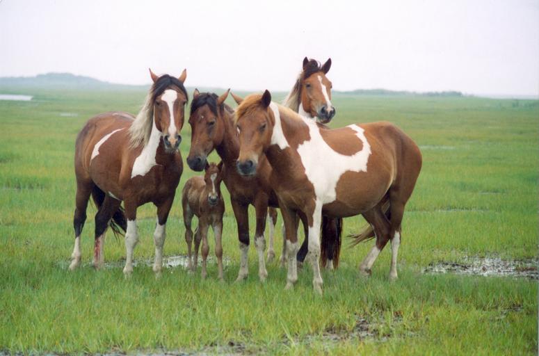 Keywords: Band green Grass Field animal horses wildlife young Assateague Island National Seashore