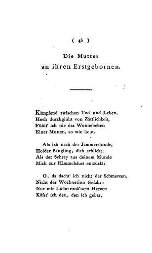 Keywords: Bandemer Neue vermischte Gedichte 046.jpg Bandemer Neue vermischte Gedichte jpg 011 047 Neue vermischte Gedichte von Susanne von Bandemer http //books google com/books id pfoOAAAAIAAJ Google books 1802 Susanne von Bandemer 1751-1828 Author died more than 70 years ago - public domain PD-old-100 Neue vermischte Gedichte Bandemer 1802 texts |