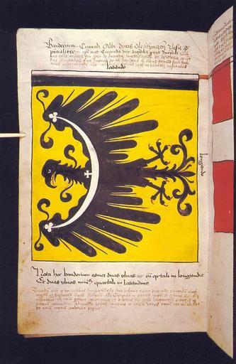 Keywords: Banderia Prutenorum 4v.jpg la Banderium Cunradi Albi ducis Oleschniczensis Zlesie quod presencialiter ipsemet Cunradus dux de gentibus propriis ducebat; sub quo erant milites sui proprii de ducatu Wratislauiensi et de Slesia Et ipse dux Cunradus fuit captus et tam banderio quam omnibus fortunis suis spoliatus liberalitate autem Wladislai Polonie regis in libertatem restitutus Konrada BiaÅ‚ego ksiÄ™cia oleÅ›nickiego ze ÅšlÄ…ska pod którÄ… stanÄ…Å‚ osobiÅ›cie sam książę Konrad wraz ze swoimi ludźmi Byli wiÄ™c razem z nim jego wÅ‚aÅ›ni rycerze z ksiÄ™stwa wrocÅ‚awskiego i ze ÅšlÄ…ska Sam książę Konrad zostaÅ‚ pojmany i pozbawiony tak chorÄ…gwi jak i caÅ‚ego swojego mienia Wypuszczony zostaÅ‚ na wolność dopiero za wstawiennictwem króla WÅ‚adysÅ‚awa Należy mieć Å›wiadomość że spoÅ›ród wszystkich Å›lÄ…skich czy polskich książąt żaden inny jak tylko ten książę Konrad oleÅ›nicki i Kazimierz książę sÅ‚upski inaczej szczeciÅ„ski nie przeszedÅ‚ na stronÄ™ Krzyżaków zresztÄ… z wiecznÄ… dla siebie haÅ„bÄ… i wstydem bo przecież starali siÄ™ rozszarpać i zniszczyć wÅ‚asnÄ… mowÄ™ i ojczyznÄ™ wspierajÄ…c wrogów Król WÅ‚adysÅ‚aw przebaczyÅ‚ jednak obu oraz ich wziÄ™tym do niewoli rycerzom <br/>Ta chorÄ…giew ma dÅ‚ugość dwóch Å‚okci i ćwierć ok 140 cm a szerokość dwóch Å‚okci bez ćwierci ok 110 cm en Banner of Konrad VII the White duke of OleÅ›nica “ fighting knights from Duchy of WrocÅ‚aw Banderia Prutenorum Fol 4v http //www laborunion lt/memorandum/ru/modules/banderia/primus htm Ekdahl S Die Banderia Prutenorum des Jan Dlugosz - eine Quelle zur Schlacht bei Tannenberg 1410 Göttingen 1976 Jan DÅ‚ugosz StanisÅ‚aw Durink 1448 File Banderia Prutenorum Folio 4v jpg Cunradus Albus 1448 Banderia Prutenorum png PD-old-100 Banderia Prutenorum Flags of the House of Piast Conrad VII of Olésnica |