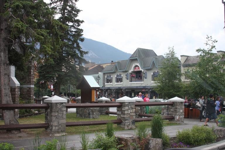 MAKE A MEME View Large Image banff town canada street destination stone park national canadian flowers travel world . intersection european traffic avenue summer outside building bike balcony season unesco shopping heritage chalet architecture