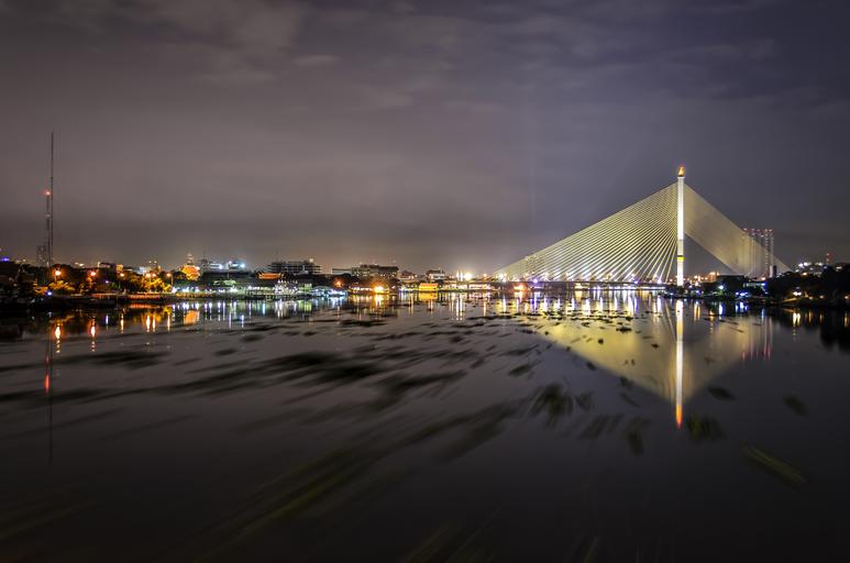 Keywords: bangkok bridge river night city thai asia travel long exposure