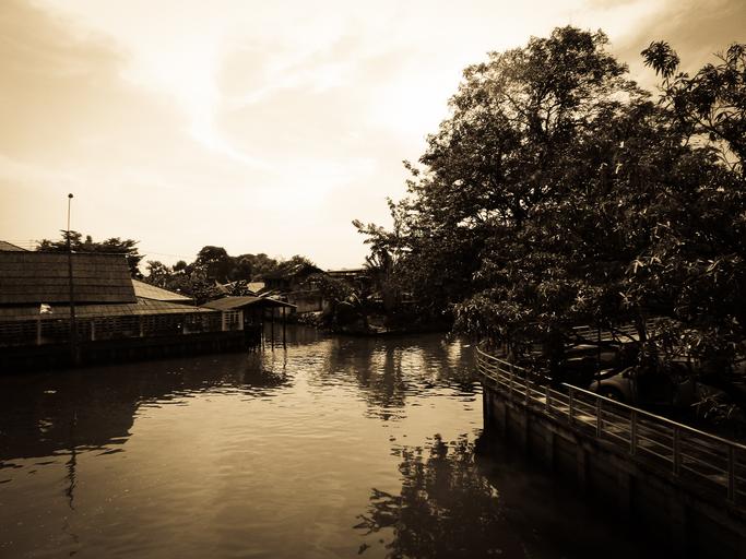 Keywords: bangkok thailand house landscape old tree nature sun sky nostalgic color