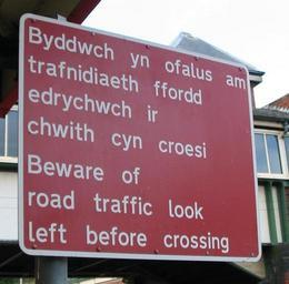 Keywords: Bangor bilingual station crossing sign.jpg Bangor station bilingual crossing sign Own 2007-12-01 Man vyi Own work all rights released Public domain Bilingual road signs in Wales Bangor Gwynedd railway station Pedestrian crossings in the United Kingdom |