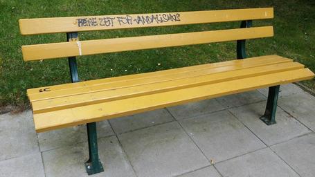 Keywords: bank garden bench seat rest cozy vandalism
