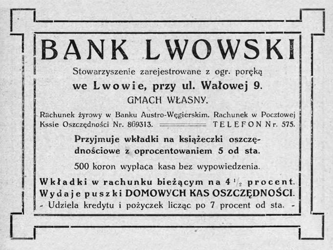 | Keywords: Bank lwowski - advertisement (01).jpg uk Реклама банку Bank lwowski у львівському путівнику 1913 ік http //www sbc org pl/dlibra/docmetadata id 42 Księga adresowa Król Stoł Miasta Lwowa Rocznik 17 1913 dodatek s 63 author 1913 Advertisements in Lviv 1913 advertisements Banks in Lviv PD-old |
