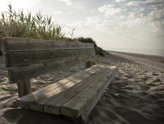 Keywords: bank rest beach peace breathing corner wooden bench wood sea sunset beauty