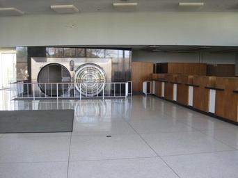 Keywords: Bank of the West Los Altos branch interior.jpg en Interior of the Bank of the West vault in downtown Los Altos California demolished in March 2011 On March 14 2011 the Los Altos Town Crier reported that the vault door was featured in the 1964 James Bond movie Goldfinger However In an unrelated story The Telegraph in the U K reported that the movie used the old Midland Bank headquarters in London 2011-02-01 own John McGehjee cc-zero Uploaded with UploadWizard Bank vaults Safes Goldfinger film Bank of the West Los Altos California |
