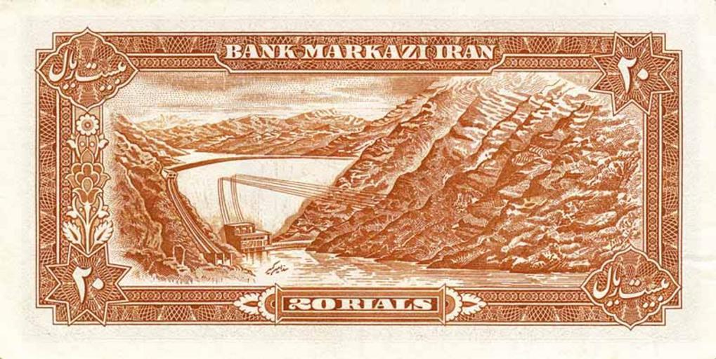 Keywords: Banknote of shah - 20 rials (rear).jpg en Banknote of shah - 20 rials rear banknotes of central bank of Iran 2012-02-02 own Iran Persian Gulf Forever cc-zero Banknotes of Iran Mohammad Reza Pahlavi era 2 Toman 20 Rial banknotes Amir Kabir Dam |
