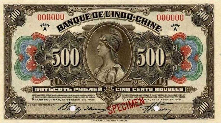 Keywords: Banque d'Indo-Chine 500 roubles 1919 av.jpg en Banque d'Indo-Chine 500 roubles 1919 av jpg own Dvergar Money of Civil war of Russia Banknotes with a face value of 500