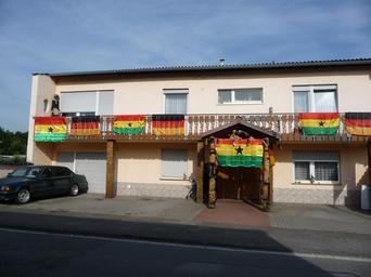 Keywords: Bansahs Haus bei der WM.jpg en Céphas Bansah own Immanuel Giel 2010-07 Céphas Bansah