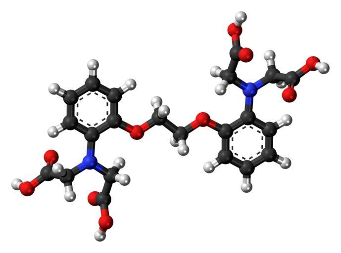 Keywords: BAPTA 3D ball.png Ball-and-stick model of the BAPTA 1 2-bis o-aminophenoxy ethane-N N N' N'-tetraacetic acid molecule a chelating agent Colour code 505050 Carbon C black<br> F0F0F0 Hydrogen H white<br> F51E1E Oxygen O red<br> 3C50FA Nitrogen N blue<br> 2011-07-03 own DS Visualizer Jynto talk Space-filling version cc-zero Images by Jynto Ball-and-stick models tetracarboxylic acids phenol ethers Anilines chelating agents |