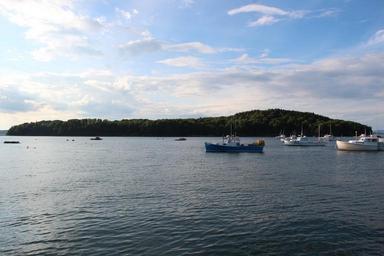 Keywords: bar island maine lake water boats ships forest trees reflections sky clouds nature outside