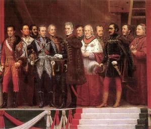 | Keywords: Barabás Laying the Foundation-stone of the Chain Bridge (detail).jpg Artwork creator Barabás Miklós A LánchÃd alapkÅ‘letétele Laying the Foundation stone for Chain Bridge 1842 08 24 1864 Oil on canvas Size cm 397 275 LangSwitch full size a teljes kép mérete Institution Hungarian National Museum Budapest object history credit line accession number A Magyar Nemzeti Múzeum történeti kiállÃtásának vezetÅ‘je ¢ 3 XVIII - XIX század ISBN 963-208-706-2 p 44 http //muzeum arcanum hu/kiadvanyok Magyar Digitális Múzeumi Könyvtár PD-old-100 <gallery> File Pose de la première pierre - Pont des chaînes Budapest jpg File Barabas-lanchid jpg </gallery> 1864 paintings in Hungary Chain Bridge Budapest in art Reform age in Hungary Paintings by Miklós Barabás in the Historical Picture Gallery Budapest Uniform pelisses Ermine clothing in art People of the reform age in Hungary 1842 in Pest Painted portraits of István Széchenyi Foundation stone laying ceremonies 19th-century oil portraits of standing men at full length in ceremonial costumes 19th-century oil on canvas paintings in Hungary DÃszmagyar |