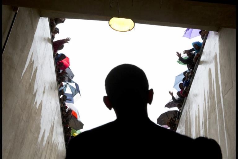 Keywords: Barack Obama in tunnel at Soccer City.jpg en South Africans cheer as President of the United States Barack Obama waits in a tunnel at Soccer City in Johannesburg before taking the stage to speak at Nelson Mandela's memorial service on 10 December 2013 2013-12-10 http //www whitehouse gov/photos-and-video/photogallery/president-obama-attends-nelson-mandela-memorial-service White House Creator Pete Souza DEFAULTSORT 20131210 PD-USGov Barack Obama in South Africa Death and state funeral of Nelson Mandela Soccer City Photographs by Pete Souza Uploaded by O'Dea Uploaded with UploadWizard