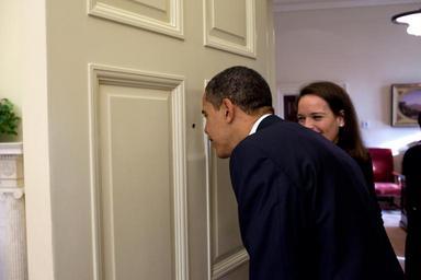 Keywords: Barack Obama looking through the Oval Office door peephole.jpg Oval Office door peephole as his personal secretary Katie Johnson watches 3/12/09 http //www flickr com/photos/whitehouse/3484835936/ The Official White House Photostream White House Pete Souza / Maison Blanche Pete Souza 2009-03-12 PD-USGov DEFAULTSORT 20090312 Barack Obama in 2009 Barack Obama in the Oval Office Katie Johnson Door viewers Photographs by Pete Souza White doors White House presidential secretary office Peepholes |