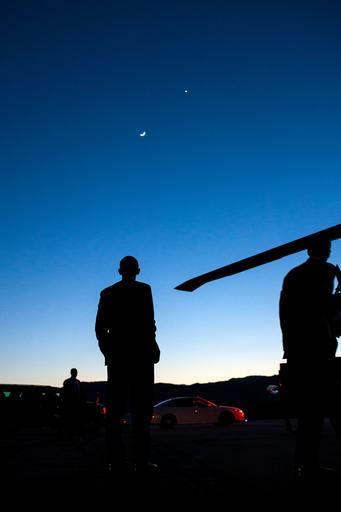 | Keywords: Barack Obama looks at the moon and Venus.jpg 40 037949 -105 231033 region US-CO_scale 2500 Barack Obama stops to view the moon and Venus before boarding the Marine One helicopter at Boulder Municipal Airport in Boulder Colorado half an hour after addressing students at the University of Colorado at Boulder on 24 April 2012 The President was facing west towards the Front Range foothills of the Rocky Mountains background at 20 18 local time while the Lunar phase waxing crescent moon was 30° above the western horizon The moon was 400 817 kilometres distant 3 4 days old 11 98 illuminated and moonset followed at 23 07 Venus was at a distance of 0 488150 astronomical unit s was 31 91 illuminated and set at 23 33 local time 2012-04-24 20 18 20 Mountain Daylight Time http //www flickr com/photos/whitehouse/7161176956 White House Flickr account Pete Souza PD-USGov Uploaded with UploadWizard Barack Obama in 2012 Venus planet People with the Moon Moonset Blue sky with the Moon in the United States Photographs of the waxing crescent moon Barack Obama and Marine One Boulder Colorado Photographs by Pete Souza Taken with Canon EOS 5D Mark II Uploaded by O'Dea |