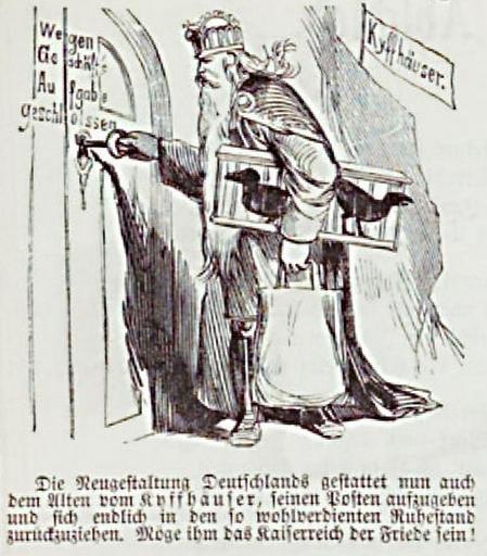 | Keywords: Barbarossa (Kladderadatsch, 1871).jpg Barbarossa In Kladderadatsch Humoristisch-satyrisches Wochenblatt Berlin 24 1871 Seite 281 http //digi ub uni-heidelberg de/diglit/kla1871/0281 UB Heidelberg 1871 Author 1871 cartoons Kladderadatsch Frederick I in 19th century art PD-old |
