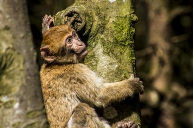 Keywords: barbary ape monkey young animal young monkey monkey mountain salem animals portrait monkey portrait äffchen mammals monkey forest nature climb climbing tree