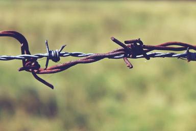 Keywords: barbed wire fence metal wire thorn limit wiring pointed demarcation close security old verrostst risk stainless imprisoned barbed wire fence nature caution coupling barrier border