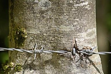 Keywords: barbed wire wire metal thorn wiring close pointed spur fixing nail nailed log