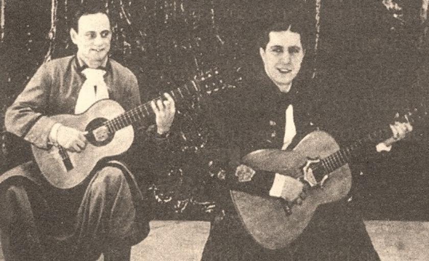 Keywords: Barbieri - Gardel.jpg en Carlos Gardel junto a su guitarrista Guillermo Barbieri 1935 Museo del Cine Argentino 1935 No es necesario porque pasó a dominio público por el transcurso del tiempo PD-AR-Photo Black and white photographic portraits of actors Carlos Gardel Guillermo Barbieri |