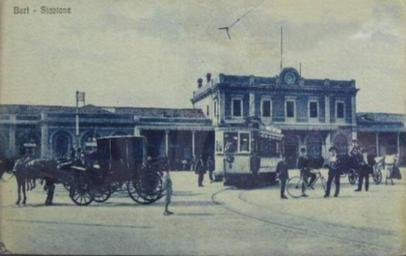 Keywords: Bari - Stazione FS - 1920.jpg it Bari - Stazione FS - 1920 1920 Cartolina/documento d'epoca author Custom license marker 2014 01 03 PD-old Uploaded with UploadWizard Bari Centrale train station 1920 in tram transport in Italy