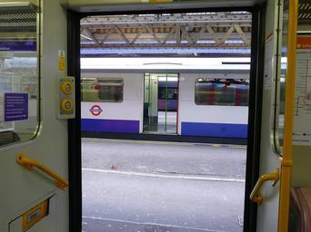 | Keywords: Barking-London-Double-Cross-Platform-Interchange.jpg en Double cross platform interchange looking from one train through another train which has its doors open on both sides to see a third train This image comes from Barking station in London where the eastbound underground trains open their doors on both sides so as to provide cross-platform interchange with two different mainline railway services these being the C2C service between Fenchurch Street and Shoeburyness stations as seen on the other side of the District Line train and the London Overground Barking - Gospel Oak service with this photograph having been taken inside one of the trains on this route own Spsmiler 2009-03-30 Barking station March 2009 in London 2009 in the London Borough of Barking and Dagenham Spanish solution |