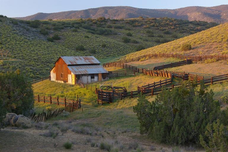 Keywords: barn cows ranch wood country vintage agriculture open range landscape building countryside rural farm hills fences