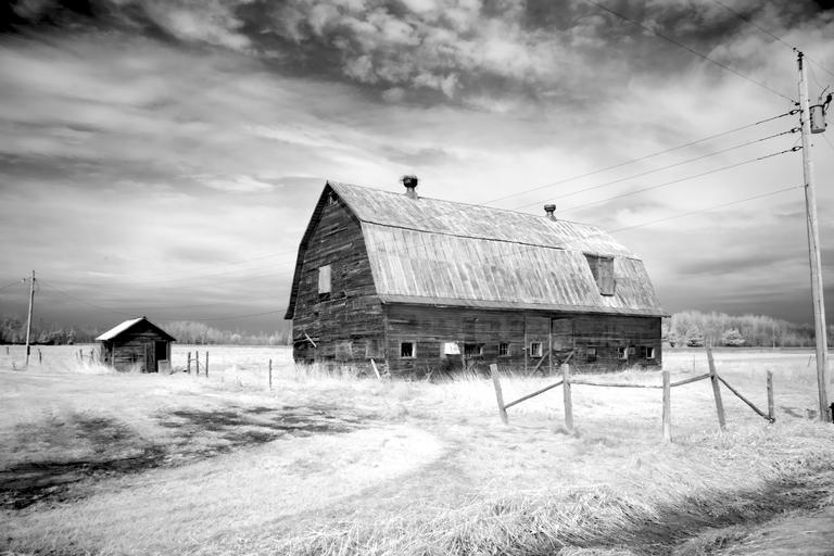 Keywords: barn farm scheuer agriculture old building roof scale hut home stall threshing floor stadl nature rural summer rustic meadow landscape grass michigan usa united states north america america infra red sw black and white black white