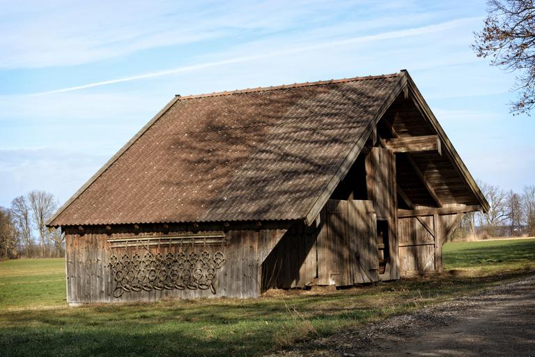 Keywords: barn hut field barn nature field meadow pasture scale log cabin old tile roof agriculture landscape chiemgau bavaria