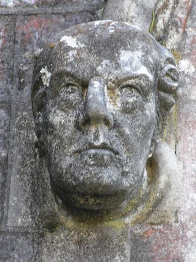 Keywords: BaronRolleGargoyleBictonChurch.JPG en Gargoyle/dripstone sculpted head depicting Baron Rolle d 1842 at right-hand side of external north private entrance to Rolle pews Bicton Church Exeter Devon Contemporary with church built 1850 own photo own photo Sculpture 1850; photo March 2012 St Mary's Church Bicton Sculptures in Devon John Rolle 1st Baron Rolle |