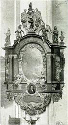 Keywords: Bartels-Epitaph Luebeck.png Epitaph des Lübecker Ratsherren Diedrich von Bartels 6 März 1633 in Lübeck; 24 September 1689 ebenda ; 1693 errichtet in der Lübecker Marienkirche 1942 beim Luftangriff auf Lübeck zerstört Das Familienwappen zeigt im blau-golden geteilten Schild einen aufgerichteten schwarzen Bären der in seinen Vordertatzen eine goldene Krone hält Auf dem gekrönten Spangenhelm der gleiche Bär wachsend Gustav Schaumann Friedrich Bruns Bearb Die Bau- und Kunstdenkmäler der Freien und Hansestadt Lübeck Hrsg von der Baudeputation Band 2 Teil 2 Die Marienkirche Nöhring Lübeck 1906 https //archive org/stream/diebauundkunstde0202lbuoft page/366/mode/2up S 366 f http //www archive org/details/diebauundkunstde0202lbuoft Digitalisat 1905 https //archive org/stream/diebauundkunstde0202lbuoft page/n9/mode/2up oder davor Creator Johannes Nöhring This image is in the public domain due to its age PD-old-100 Johannes Nöhring Wall mounted church monuments in St Marien Lübeck before 1942 17th-century senators of Lübeck |