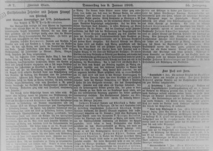 | Keywords: Bartholomäus Zehender und Johann Stumpf von Eberbach.png Bartholomäus Zehender und Johann Stumpf von Eberbach zwei Mainzer Domprediger des XVI Jahrhunderts In Mainzer Journal Jg 55 Nr 7 vom 9 1 1902 Scan from book 1902 Ferdinand Wilhelm Emil Roth Ferdinand Wilhelm Emil Roth PD-old |