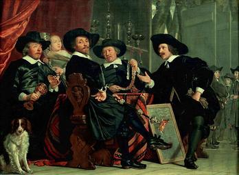 Keywords: Bartholomeus van der Helst - De bestuursleden van de schutterscompagnie van St-Sebastiaan te Amsterdam.jpg Artwork creator Bartholomeus van der Helst Gerrit Lundens LangSwitch after après naar Bartholomeus van der Helst LangSwitch Governors of the archers' civic guard Amsterdam <ref>http //www rkd nl/rkddb/dispatcher aspx action search database ChoiceImages search priref 164530 RKDimages Art-work number 164530 title translated by Wikimedia Commons </ref> Chefs des arbalétriers à Amsterdam <ref>http //www rkd nl/rkddb/dispatcher aspx action search database ChoiceImages search priref 164530 RKDimages Å’uvre d'art numéro 164530 titre traduit par Wikimedia Commons </ref> Overlieden van de Handboogdoelen Amsterdam <ref>http //www rkd nl/rkddb/dispatcher aspx action search database ChoiceImages search priref 164530 RKDimages Kunstwerknummer 164530 </ref> Alternate titles Les chefs de la confrérie des arbalétriers de saint Sébastien appartenant à la Garde civique d'Amsterdam <ref>http //cartelfr louvre fr/cartelfr/visite srv car_not_frame idNotice 25662 Site officiel du musée du Louvre </ref> <br />Les syndics des arbalétriers de saint Sébastien à Amsterdam ; dit autrefois Le jugement du prix de l ™arc <ref>http //www culture gouv fr/public/mistral/joconde_fr ACTION CHERCHER FIELD_1 REF VALUE_1 000PE003572 Base Joconde </ref> 1653 Oil canvas panel cm 49 1 68 1 Museum Louvre 1 33 Object history by 1691 Catharina Hooft 1618-1691 by 1709 Pieter de Graeff by 1719 Cornelis Graeff ProvenanceEvent 1771-07-31 sale G Braamkamp ProvenanceEvent 1783-09-22 sale Pieter Loquet Amsterdam Louis XVI de France Lodewijk XVI van Frankrijk 1754-1793 comte de Vaudreuil Paris source INV 1332 Other versions <table style background-color f9f9f9 > <tr> <td valign top > 500x120px none none span </td> <td valign top > File Bartholomeus van der Helst 002 jpg<br />Original at the Amsterdams Historisch Museum</td> </tr> </table> PD-old-100 LangSwitch Notes Noten <references /> ImageNote 1 665 551 88 44 1000 736 2 LangSwitch Signed and dated Signé et daté Gesigneerd en gedateerd BARTHOLOMEUS VANDER HELST FECIT 1653 ImageNoteEnd 1 17th-century oil on canvas paintings in France 1653 paintings 17th-century portrait paintings with dogs Group portraits with 8 persons Militia paintings Sgabellos Louvre by room - Northern Schools - Room 33 Bartholomeus van der Helst Copies Portraits with dogs Red curtains in art Portrait paintings of men wearing hats Paintings with signatures lower right Paintings with years of production artist 1650s portrait paintings Archers in art |