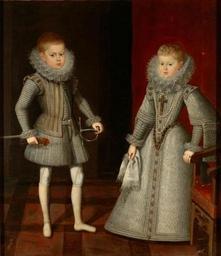 Keywords: Bartolomé González y Serrano 004.jpg Artwork Creator Bartolomé González y Serrano 1612 Oil on canvas de 137 × 118 cm Rahmenmaße 153 × 133 5 x 7 cm Institution KHM Inv -Nr GG 3200 http //bilddatenbank khm at/viewArtefact id 2319 de Stempel/Zeichen Rückseite roter Stern Provenienz Alter Kaiserlicher Besitz; 1772 in der Galerie nachweisbar; Abgebildete Personen Infant Carlos Sohn des Philipp III von Habsburg Spanien Kaiserin Maria Anna Tochter des Philipp III von Habsburg Spanien other versions PD-old-100 DEFAULTSORT 1612;Maria Anna;Carlos of Spai Bartolomé González y Serrano Paintings by Bartolomé González y Serrano in the Kunsthistorisches Museum Maria Anna of Spain Infante Carlos of Spain 1610s paintings in Austria 1610s portrait paintings from Spain M 1612 oil on canvas paintings Portrait 1612 portrait paintings M 17th-century family portraits of royalty 17th-century oil on canvas paintings in Austria 17th-century oil portraits of children at full length 17th-century portrait paintings in the Kunsthistorisches Museum Armchairs in portrait paintings Children in Spanish portraits Girls looking at viewer in art Male portraits holding glove Male white shoes in portrait paintings One-to-one in art Portrait paintings of men holding swords Portrait paintings of siblings Portrait paintings of standing children Portrait paintings of standing women with hands resting in armchairs Portrait paintings of women holding handkerchiefs Portraits wearing cross necklaces Portraits with 2 persons Ruffs in art Spanish saya court dress |