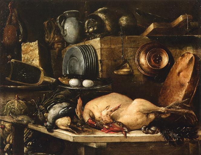 Keywords: Bartolomeo Arbotori - Kitchen with plucked turkey, dishes and cat.jpg Artwork Creator Bartolomeo Arbotori 1640-1676 Oil on canvas size cm 95 122 object history credit line At Galleria d'Orlane accession number http //www gianlucabocchi com/en/art-market/dipinti/ PD-old-100 Bartolomeo Arbotori Still-life paintings of game 1601-1650 paintings |